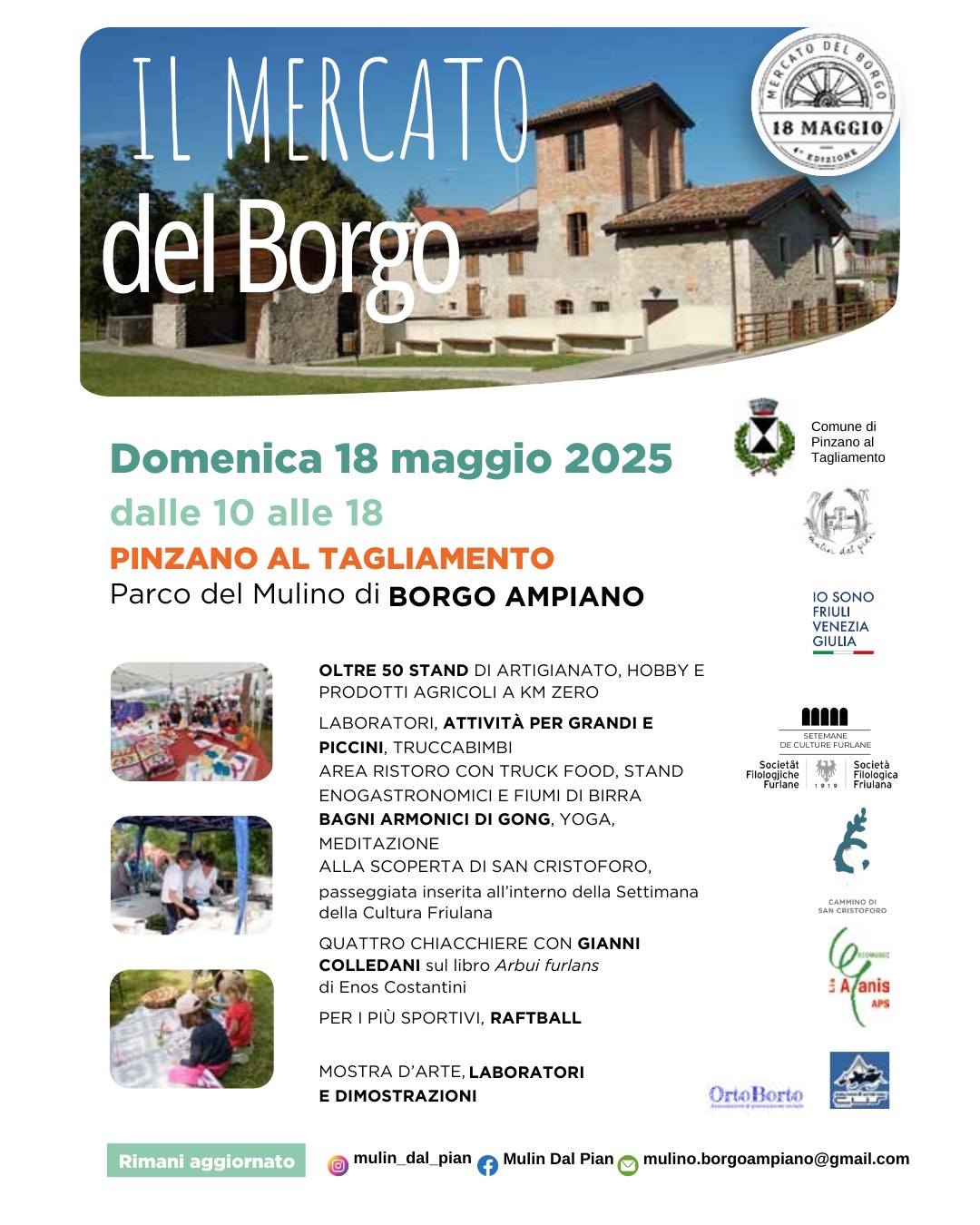 DOMENICA 18 MAGGIO 2025 DALLE 10 ALLE 16 ALLA FESTA DEL MERCATO DEL BORGO, PRESSO IL MULINO DI BORGO AMPIANO, PINZANO AL TAGLIAMENTO (PN)